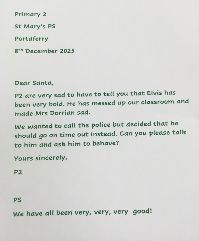 P2 were shocked this morning to find that Elvis their class elf had torn through the class like a tornado and made a complete mess! First on the scene was Halle-Rose, followed hot on her heels by Niamh and Aoibhlinn!
